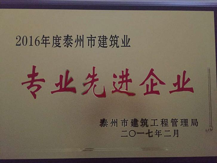 熱烈祝賀我公司榮獲2016年度“專(zhuān)業(yè)先進(jìn)企業(yè)”